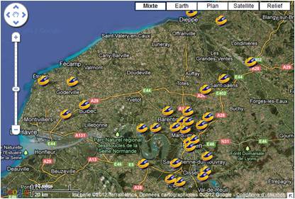 Cliquez sur un ballon pour faire apparaître les coordonnées d'un espace loisir.
